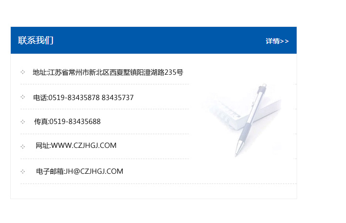 傳真:0519-83435688    郵編:213135    網址:WWW.czjhgj_com.taikangaq.com    電子郵箱:JH@czjhgj_com.taikangaq.com